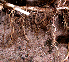 The plant transfers oxygen down to its root system, where it fuels thriving microbial activity, and in return uptakes nitrogen and phosphorus as nutrients.