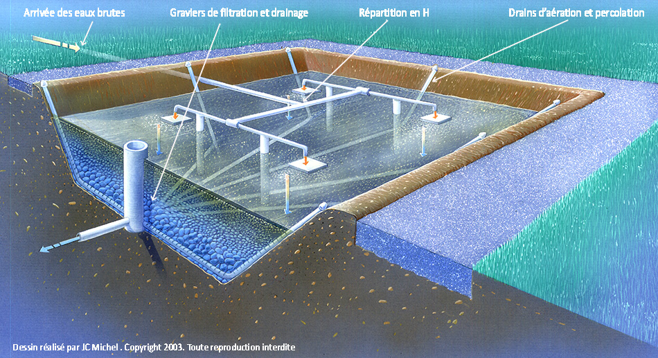 La filtration verticale impose de soigner la répartition hydraulique des effluents à la surface du filtre.